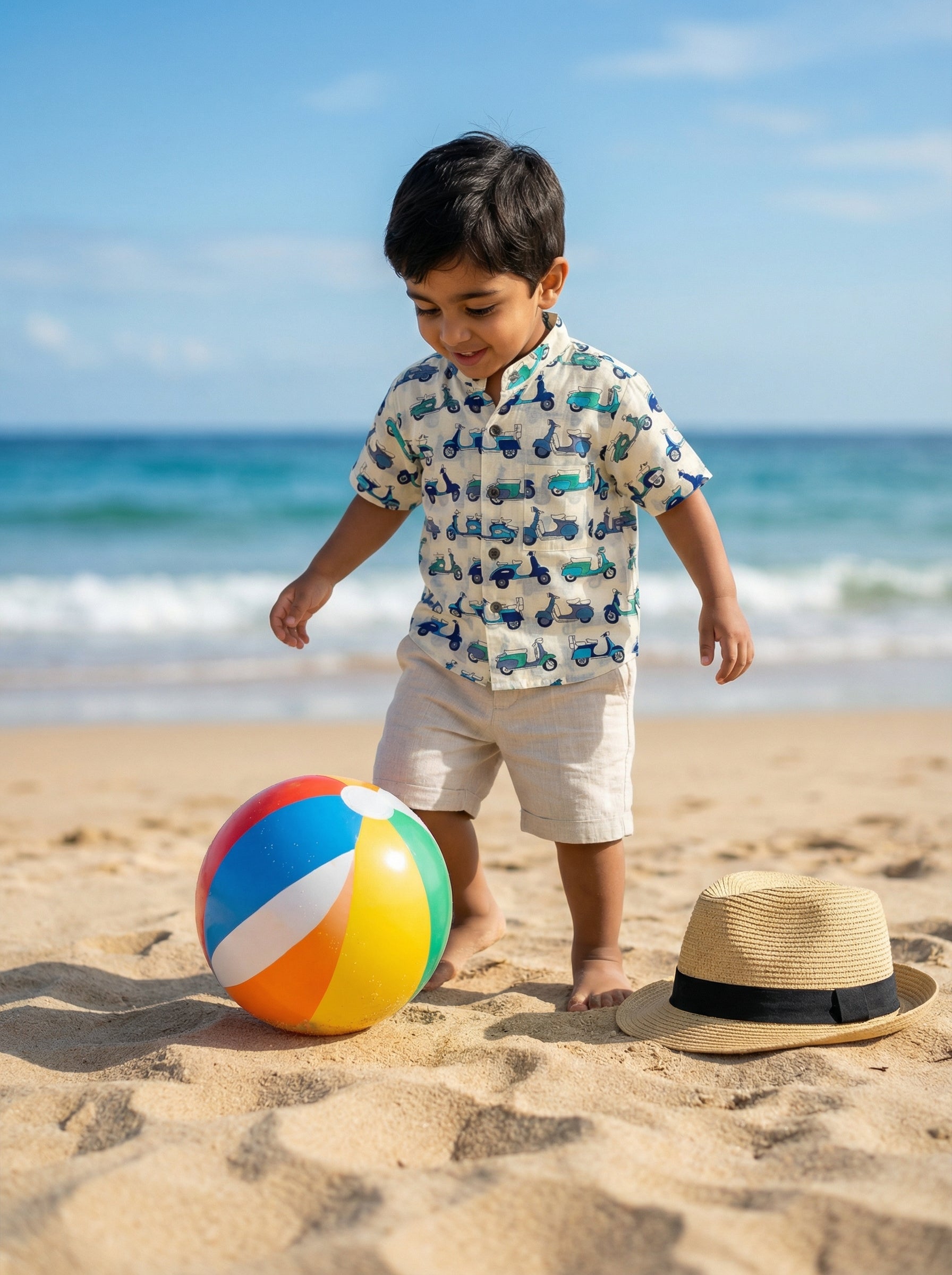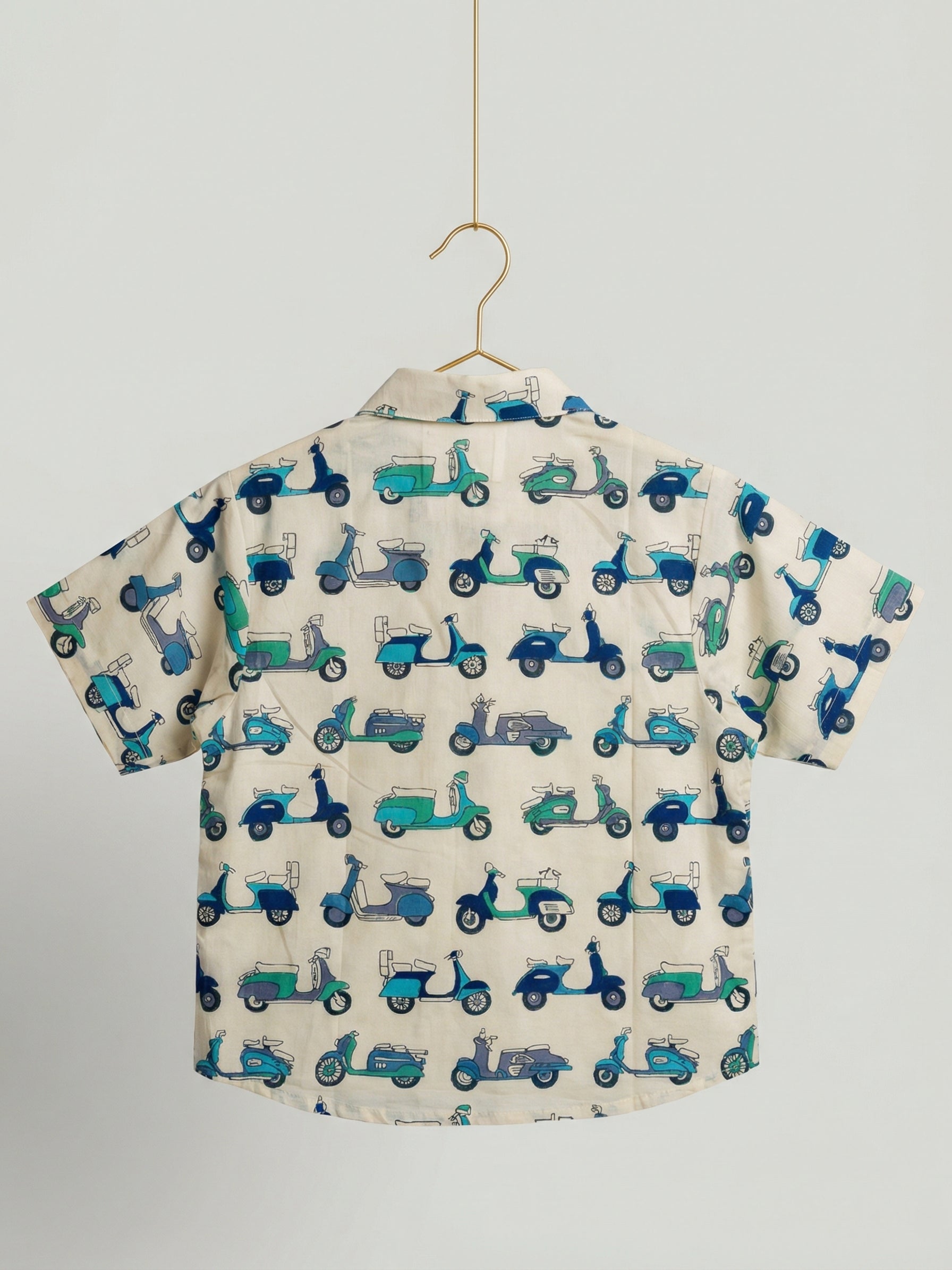 A Scooter print shirt in pure cotton breathable fabric perfect for playdates and casual wear. Pair it up with shorts or our Dawn to Dusk cotton pants and your little one is ready to go.